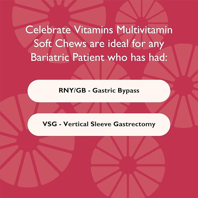 Celebrate Vitamins Bariatric Multivitamin Soft Chews - Essential Vitamins & Minerals, Sugar & Gluten Free - Gastric Bypass & Sleeve Gastrectomy Supplement - Cherry (180ct)
