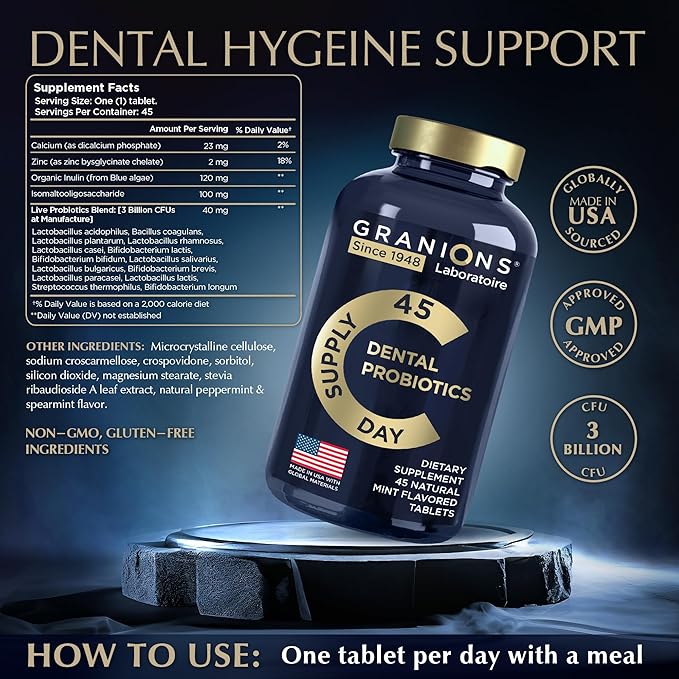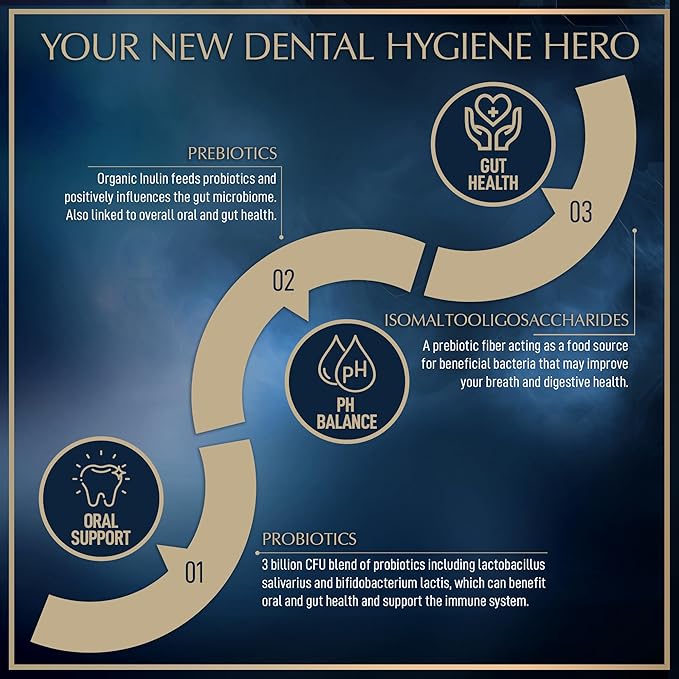 - THREE BILLION CFU ORAL PROBIOTIC. Rejuvenate your mouth's beneficial bacteria equilibrium. Enriched with inulin prebiotic, our Lactobacillus salivarius tablets support teeth, gums and gut health.