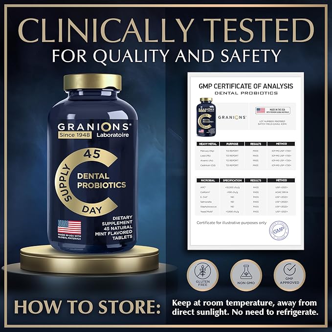 - BILLIONS OF GOOD BACTERIA. These lactobacillus salivarius oral probiotics for teeth and gums are gluten-free, non-GMO and made in the USA. Reinforce your natural good bacteria with tasty, chewable mint tablets.