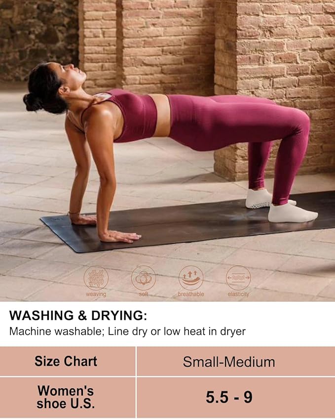 - ✅FIT JUST RIGHT - One Size fits Women’s US shoe size 5.5-9. These adult grippy socks are perfect for yoga, pilates, bikram, barre, ballet, studio, gym or dance. Also ideal for hospital socks, floor socks, physiotherapy, elderly care, pregnancy and more to prevent falls from stairs, or the floor.