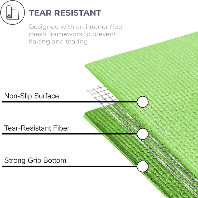 - Non-Slip: The fitness mat features a textured surface for stability and balance when changing or maintaining poses; created with an interior fiber mesh layer to reduce mat stretch and resist tears for longevity
