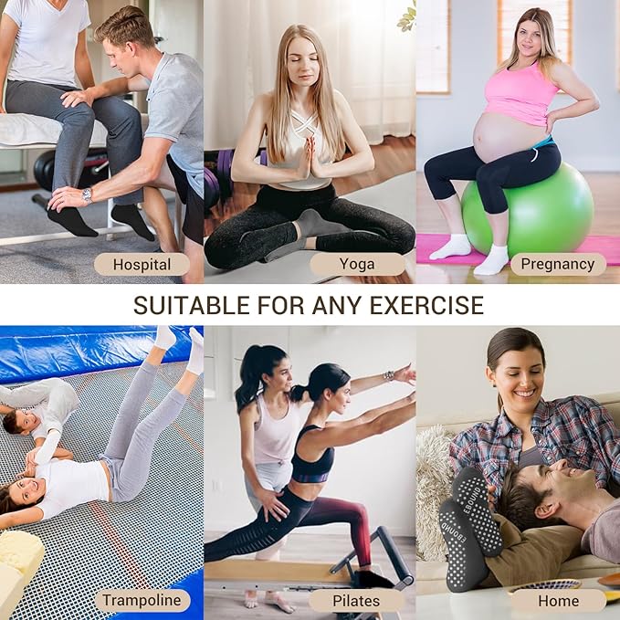 • NON-SLIP GRIPS DESIG: The grip socks with grips are comfy you won’t feel all the non skid dots as you walk. Non skid socks stay on easily are perfect for Yoga, Pilates, Hospital, Barre, Dance, Tower, Bar Classes,Trampoline, Fitness, Taekwondo, Workout, Housework, etc