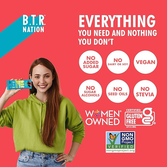 - ✅ NO JUNK, EVER. WE PROMISE: B.T.R. Bars are Non-GMO, Gluten-Free, Dairy-Free, and Soy-Free with a 100% Clean Label. No sugar alcohols, no stevia, no gums or emulsifiers, and no flavors (not even so-called “natural flavors”)