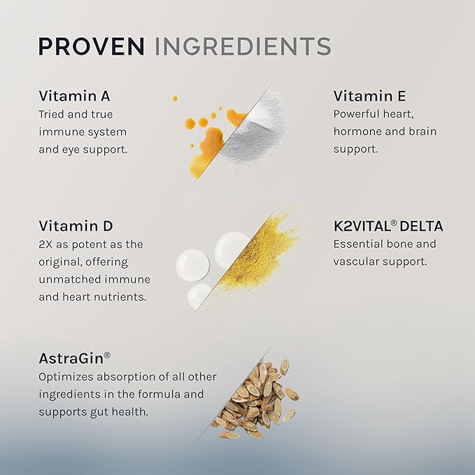 - Bolster Nutrient Absorption - This bioavailalbe formula uses active nutrient forms. The fat-soluble delivery of vitamins A, D3 and K2 helps enhance absorption so the body can utilize these essential nutrients effectively while minimizing waste and nutrient loss.*