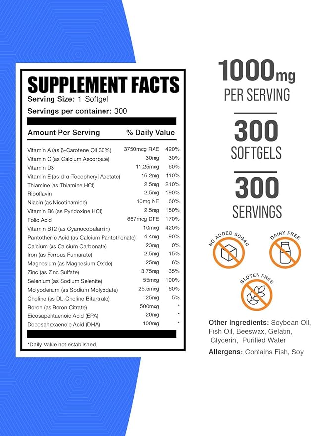 BulkSupplements.com Multivitamin for Men 50 Plus Softgels - Men's Daily Vitamins, Multimineral Supplement - Complete Multivitamin with Fish Oil - 1 Softgel per Serving, 300 Count (Pack of 1)