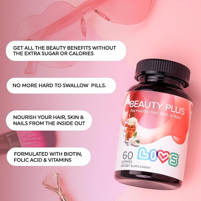 - Elevate Your Beauty Naturally: Indulge in LIVS Beauty Plus Gummies, a delightful cream soda-flavored treat that revolutionizes your daily beauty regimen. These delicious beauty gummies are specifically formulated to promote healthy hair, skin, and nails, supporting your natural radiance from within.