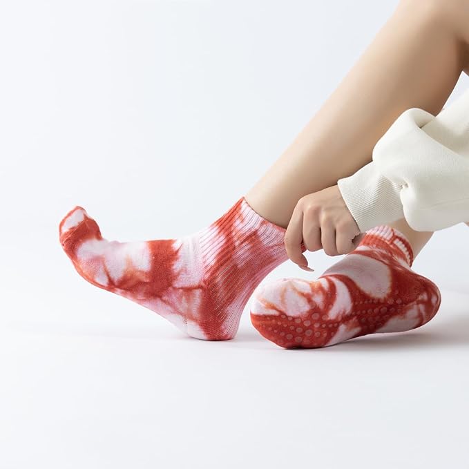 - 【Occasions】: Designed for use on smooth and slippery surfaces like hardwood floors or tiles, our fancy tie dye cushioned grip socks offer excellent comfort without compromising performance. They are perfect for enhancing your yoga practice and are also suitable for Pilates, ballet, fitness, dance, and other barefoot activities.