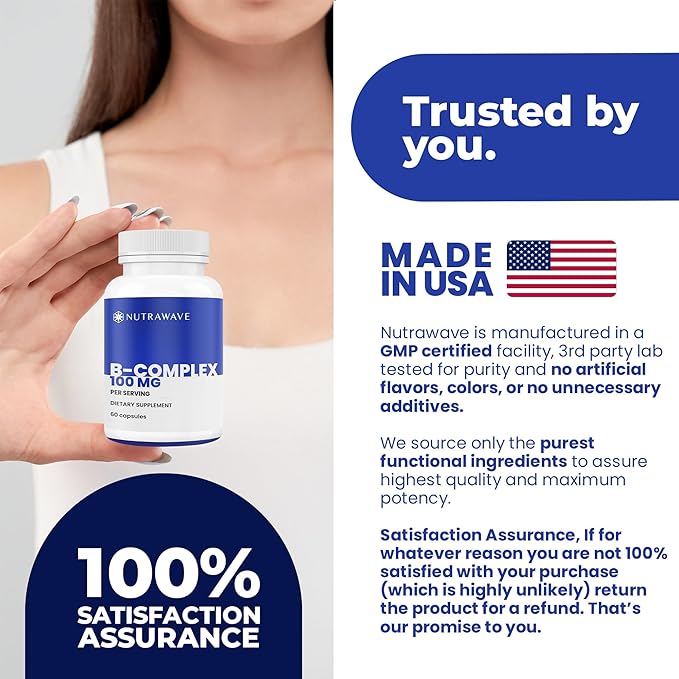 - GUARANTEED SATISFACTION – Love it or its on us. Use Nutra Wave B12 Complex daily to help prevent Vit B Complex deficiency and support your immune system, energy levels, mood, and more. Our goal is to make the purest, all natural, healthiest products on earth.