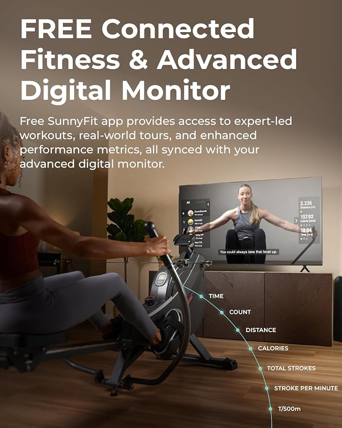 - 【FREE CONNECTED APP】 Enjoy FREE access to the SunnyFit App with every Sunny Health & Fitness product—no membership fees! Dive into 1,000+ trainer-led workouts, explore 10,000+ virtual scenic tours, track progress, challenge others, and much more!