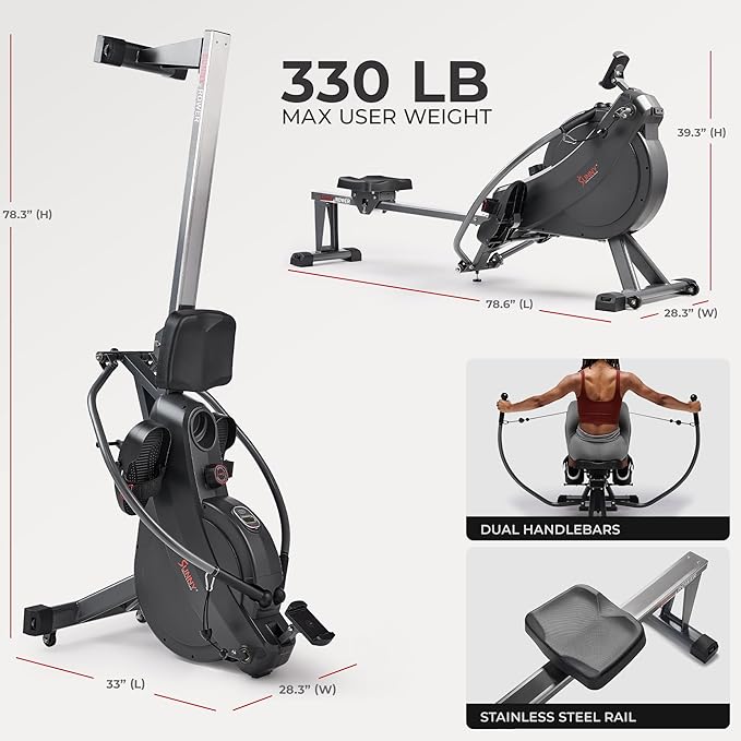 Sunny Health & Fitness Compact Full-Motion Rowing Machine w/Adjustable Resistance, Low-Impact Full-Body Workout Rower w/Long Slide Rail, Space-Saving Design, Optional Free SunnyFit App Connection