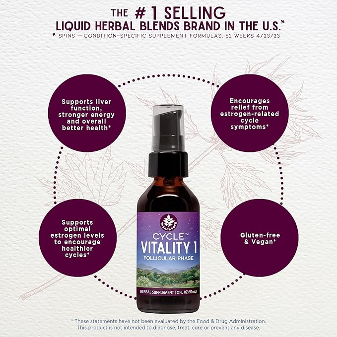 - LIQUID ESTROGEN SUPPLEMENT FOR WOMEN TINCTURES ARE MORE EFFECTIVE: Liquid herbal extracts are easily absorbed by the body, quicker & more efficient than chews, tablets, capsules or gummies. Easily customize each serving to best meet your needs. Our innovations have raised the bar on efficacy and convenience. Cycle Vitality I is designed for daily use in the first half of the menstrual cycle. Take in combination with Cycle Vitality II for progesterone balance support.