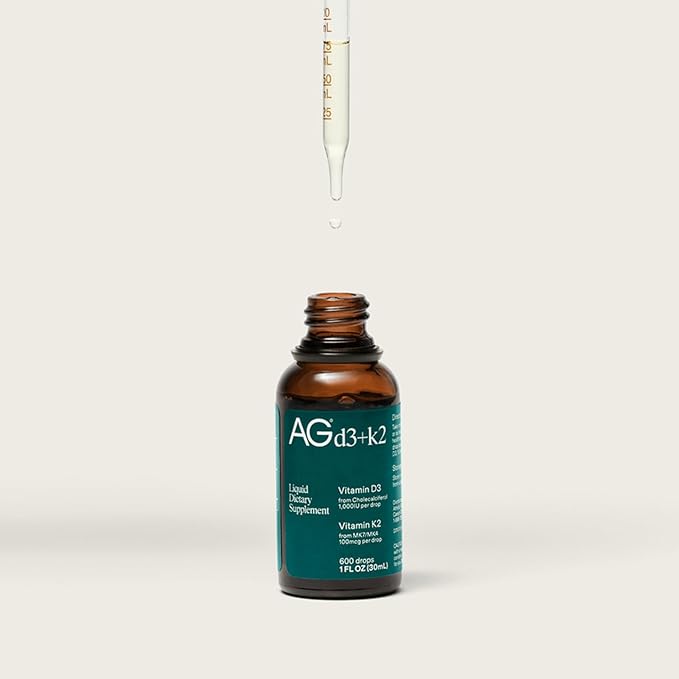 - HIGH-CONCENTRATION LIQUID VITAMIN DROPS: Flexible, easy-to-use dropper to personalize any serving. Vitamin D is hard for the body to process from foods and is more effective in oil forms. Since we never compromise on quality at AG, AG Vitamin D3+K2 is formulated separately from AG1 to ensure the high-quality vitamins are absorbed into your body.