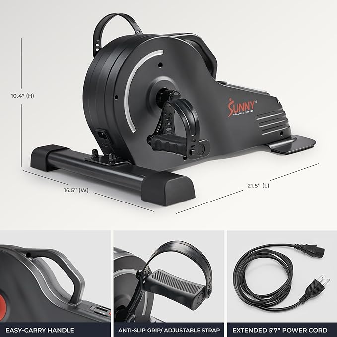 Sunny Health & Fitness Dual Function Under Desk Pedal Exerciser, Portable Indoor Cardio Mini Bike at Home, Arm/Leg Cycle for Seniors, Optional Magnetic, Motorized & Free SunnyFit App Bluetooth Connect