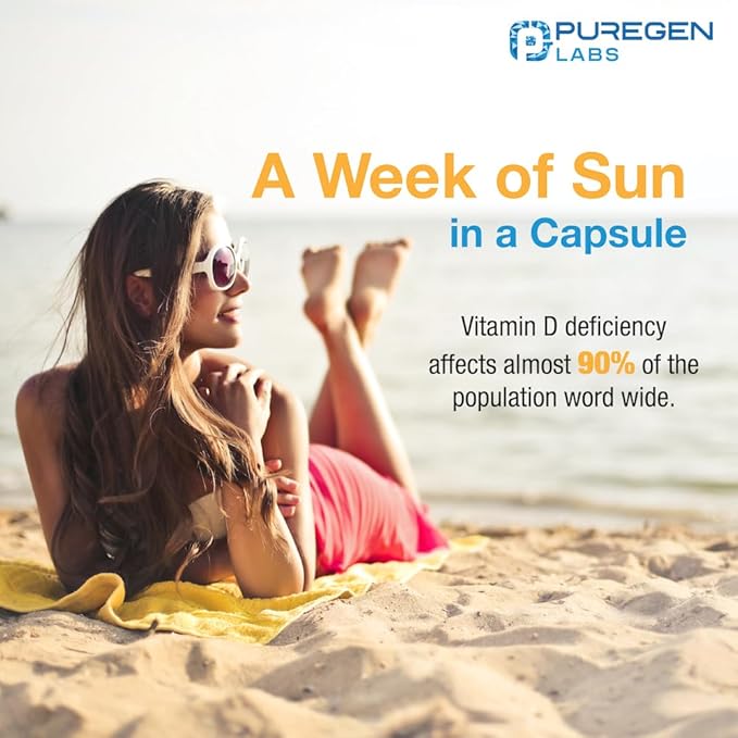 Puregen Labs Vitamin D3 50,000 IU (1250 mcg) 100 Weeks Supply for Healthy Muscle Function, and Immune Support, Non-GMO, Gluten Free 100 Vegetable Capsules