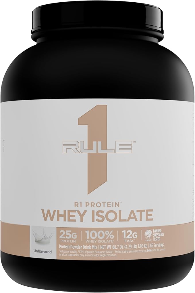 Rule 1 Naturally Flavored R1 Protein Whey Isolate - Clean Formula with 25g Protein & 6g BCAA Exclusively Isolated & Hydrolyzed Sources for Workout Recovery (4.3 Pounds*, Unflavored)