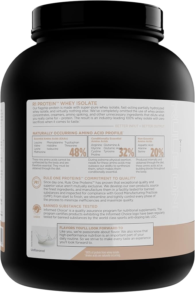 - Clean Manufacturing: Proudly made in the USA in our own state-of-the-art facility with the finest globally sourced ingredients. As an Informed Choice certified product, Naturally Flavored R1 Protein Whey Isolate is also independently tested for banned substances.
