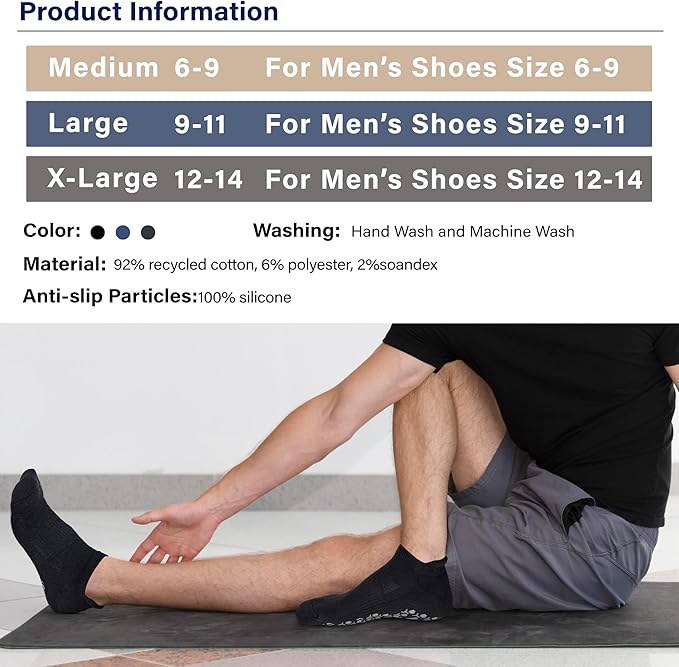 Muezna Men's Non-Slip Yoga Socks, Anti-Skid Pilates, Barre, Bikram Fitness Hospital Slipper Socks with Grips