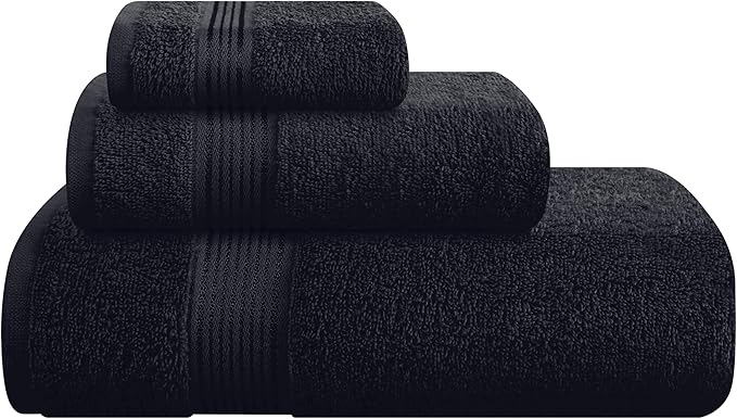 Belizzi Home Ultra Soft 3 Pack Cotton Towel Set, Contains a Bath Towel 28x55 inch, a Hand Towel 16x24 inch & a Wash Coth 12x12 inch, Ideal Everyday use, Compact & Lightweight - Black