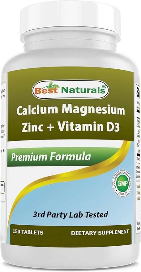 Best Naturals Calcium Magnesium Zinc with Vitamin D3, 150 Tablets - Calcium 1000 mg, Magnesium 400 mg, Zinc 25 mg & D3 600 IU per Serving (3 Tablets)