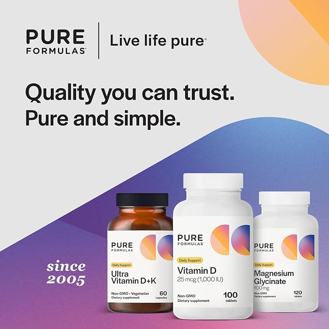 - Elevate Your Health: PureFormulas Vitamin D3 1000 IU supports immune function, bone health, and mood. Our vegetarian capsules are a convenient way to ensure optimal vitamin D levels, crucial for overall well-being. Boost your vitality naturally!
