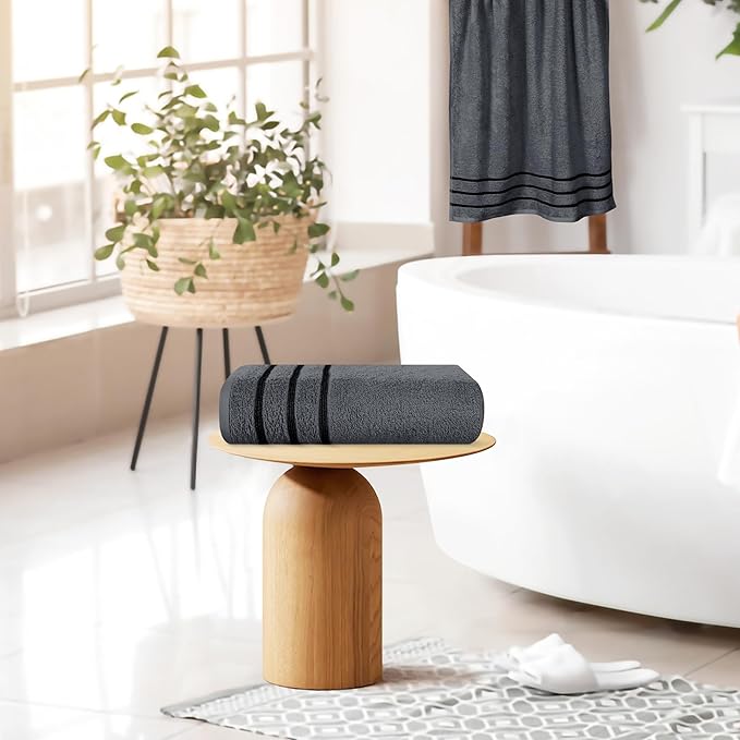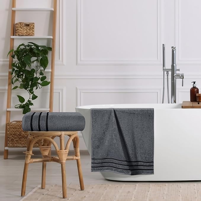 MyOwn Cotton 2 Pack Oversized Bath Towel Set 28x55 inches, Large Bath Towels, Ultra Absorbant Compact Quickdry & Lightweight Towel, Ideal for Gym Travel Camp Pool - Charcoal Grey
