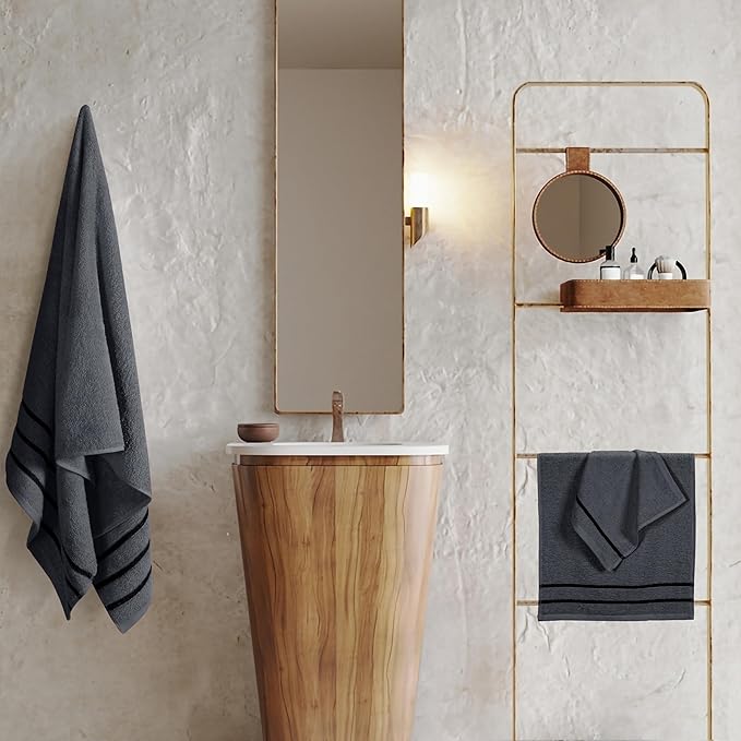 MyOwn Ultra Soft 3 Pack Cotton Towel Set, Contains a Bath Towel 28x55 inch, a Hand Towel 16x24 inch & Wash Coth 12x12 inch, Ideal Everyday use, Compact & Lightweight - Charcoal Grey, 71683