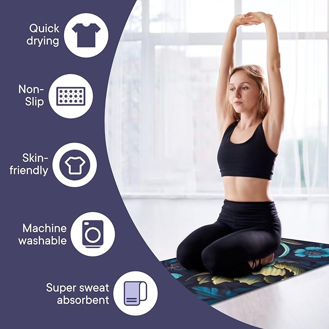 - PREMIUM MATERIAL: Made of high-quality, breathable, and quick-drying material, this yoga mat towel is perfect for hot yoga and sweaty sessions. The non-slip surface ensures a firm grip for your hands and feet, preventing injuries.