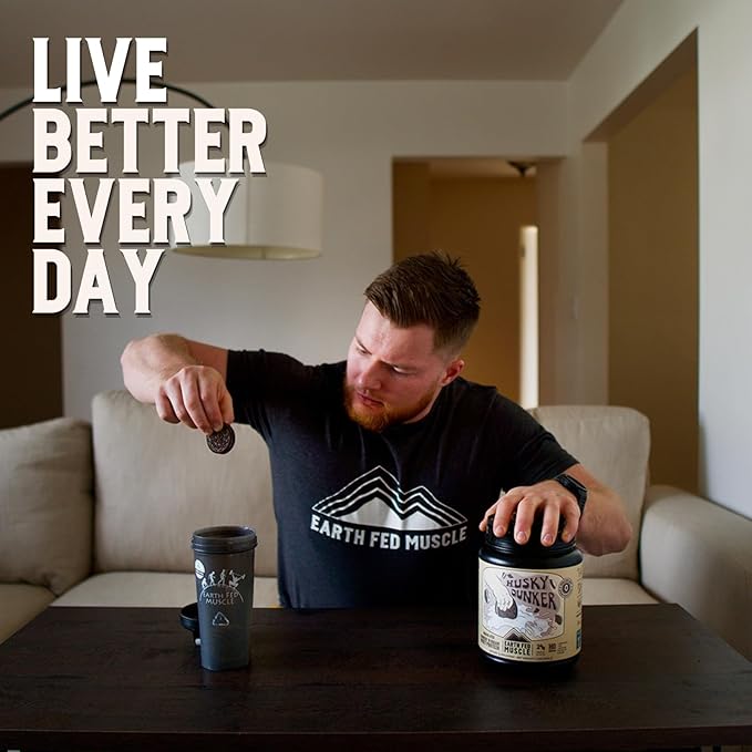 Earth Fed Muscle Husky Dunker Cookies N' Cream Truly Grass Fed Whey Protein Powder - No Artificial Ingredients, Soy Free, Non-GMO and Hormone Free (2 Pound, 27 Servings, Cookies n' Cream)
