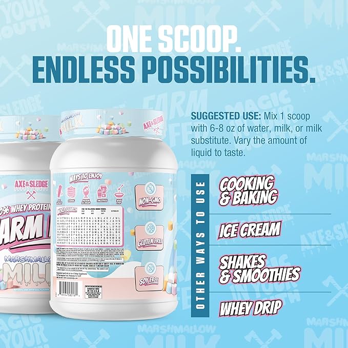 Axe & Sledge Farm Fed 100% Whey Protein Isolate | 25g Protein | Low Carb, Low Sugar, Soy Free, Gluten Free | Protein Powder for Men and Women | Keto | Made in The USA | 28 Servings, Marshmallow Milk
