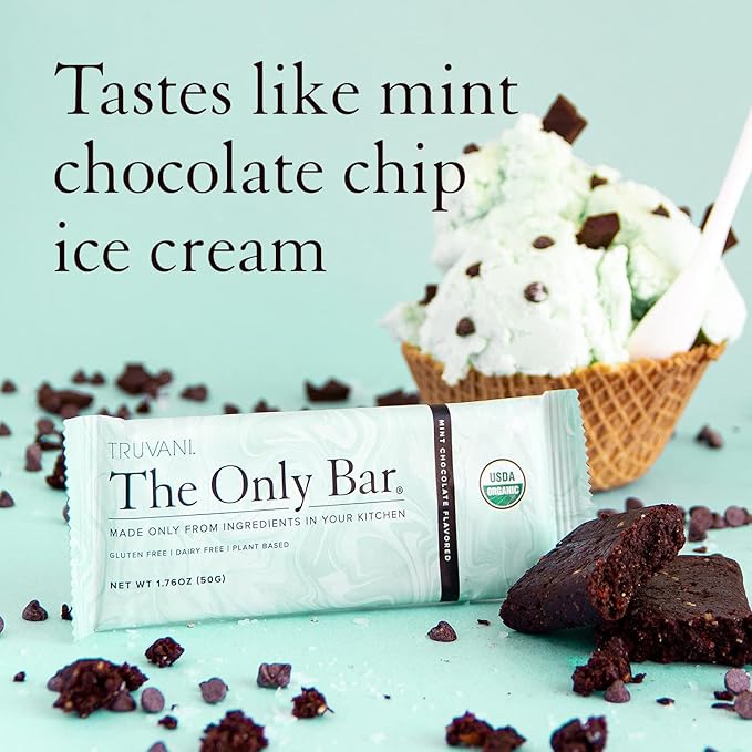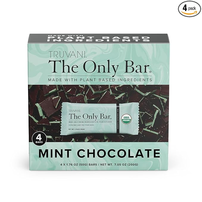 Truvani Plant Based Snack Bars | Chocolate Mint 4 Pack | 7g Protein | USDA Organic and Vegan | The Only Bar | Dairy, Soy, and Gluten Free | Individually Wrapped