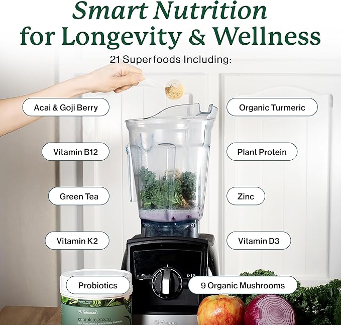 - GREENS POWDER | Dr. Fuhrman Complete Greens Multivitamin and Superfoods Formula is a premium blend of organic greens and nutrient-rich superfoods. It’s packed with essential vitamins and minerals that are often hard to get enough of from plant foods alone, including vitamins B12, D3, K2, zinc, and iodine, to help support overall health and daily nutrition