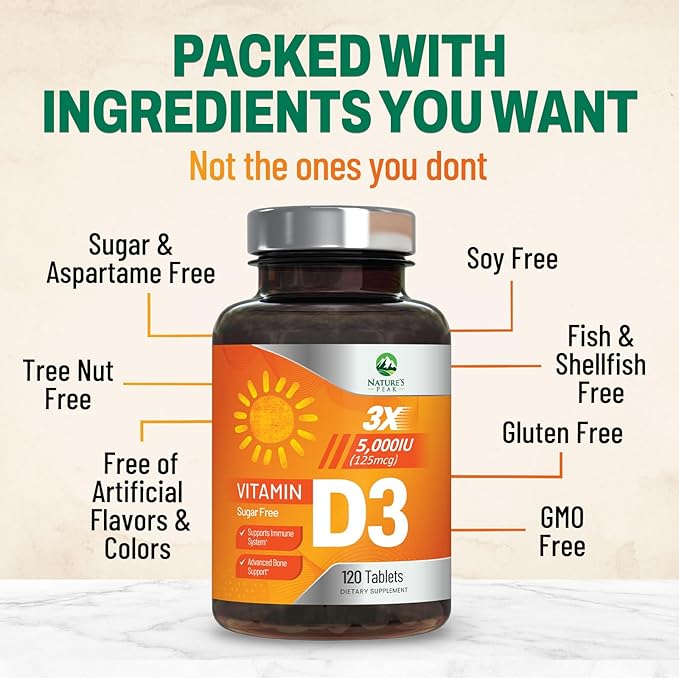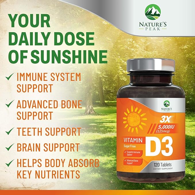 - NATURE'S PEAK VITAMIN D3 5000 IU: Each chewable tablet delivers vitamin d3 5000 IU, supporting bone strength, muscles, and immune health support