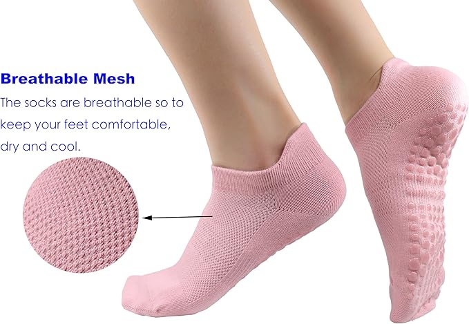 - Material: Women Non Slip Grippy Yoga Socks are made of soft cotton and polyester, comfortable and elastic. silicone gel grips on the bottoml. Soft and breathable, moisture-wicking performance keeps your feet dry. You can enjoy perfect stability and bring a good sports experience, and it will not be deformed or broken after exercise or washing