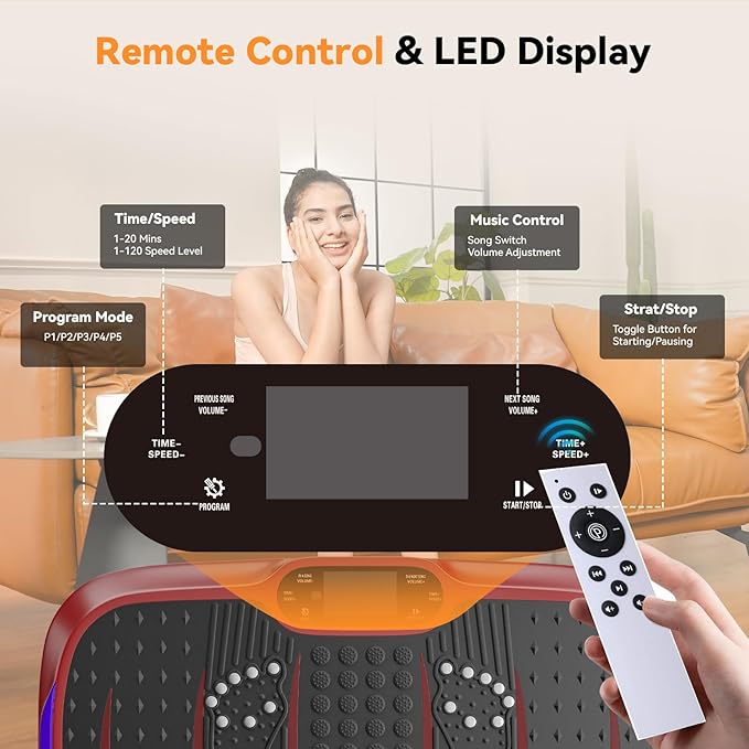 - 【Humanized Design】This UCIN vibration plate is larger than others in its class, providing comfort for larger users. Constructed with an ABS shell, it is more durable and can support weights of up to 440 pounds. With four anti-slip suction cups on the bottom, stability is ensured. Equipped with a remote control, you can adjust the vibration frequency and time according to your preferences. Easy to store and use.