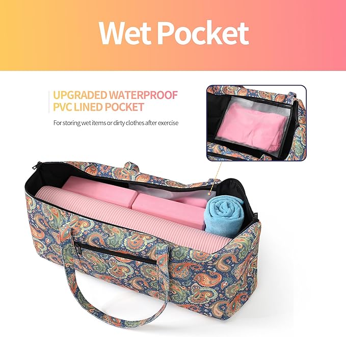 Boulder Bee | Yoga Mat Bag | Large Yoga Mat Carrier with Wet Pocket | Yoga Gifts | Gym Tote Bag for Women