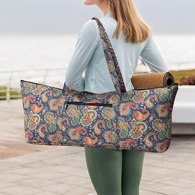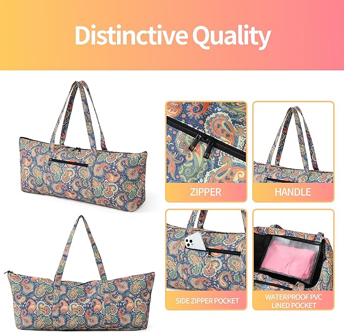 - Distinctive quality: The yoga mat bag is designed with vintage bohemian patterns. Features high-quality cotton canvas and reinforced sewing threads.