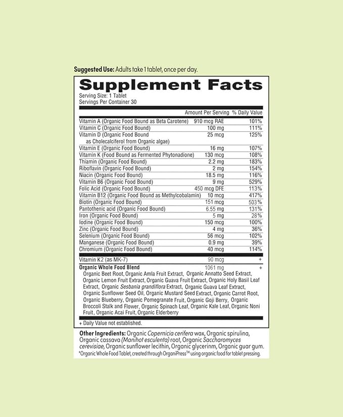 - OrganiPress Tablet Technology: Patented 4-step process ensures maximum bioavailability and potency using extraction, chelation, fermentation, and natural binding.