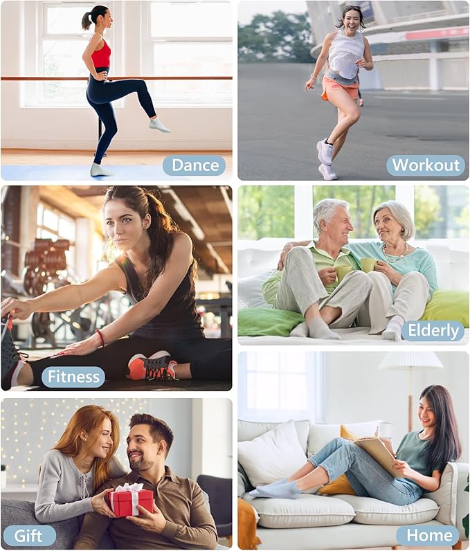 • ARCH SUPPORT & HEEL TAB: Designed with a high-quality heel tab, these slipper socks with grips for women protect your feet from hurt and avoid shoes rubbing. Featured a elastic cuff, the non slip athletic socks are easy to put on and take off, also offer snug fit which will stay in place