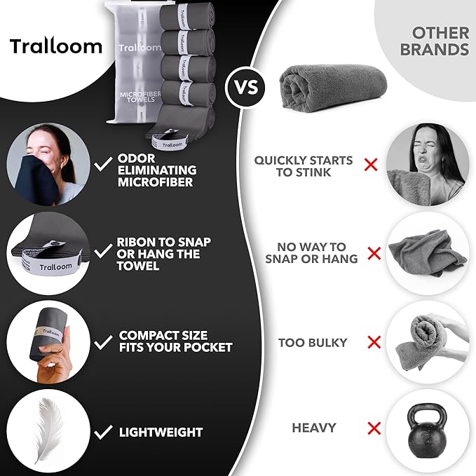 - WHY NOT REGULAR TOWEL? Unlike regular bulky towels or gym paper, which can be scratchy and messy, our towel’s premium fibers are designed to be compact, gentle on the skin, stink-free, and highly absorbent. These fast drying towels are perfect for athletic activities like Pilates, pickleball, basketball, and CrossFit, as well as for saunas, travel, hiking, and the beach. A versatile rag and fitness gift, they are must haves for bodybuilders, weightlifters, and anyone looking for reliable gear and accessories for workouts, showers, or daily essentials
