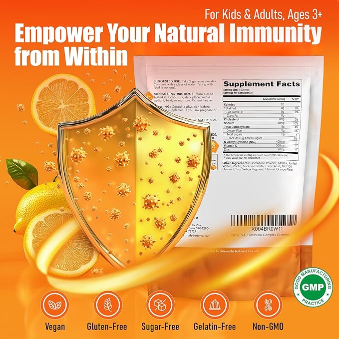 - [Tasty NAC Gummies for Kids] - Our NAC gummies have a delicious natural orange flavor that kids and teens enjoy, making it simple for parents to provide immune support everyday. With a soft texture, they’re easy to chew and swallow, encouraging regular use of n acetylcysteine supplements.
