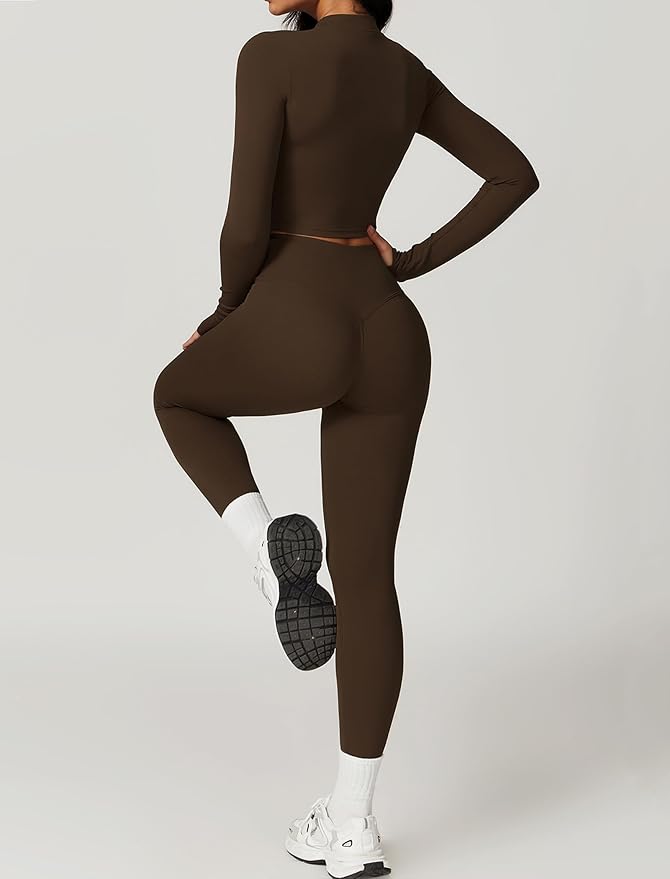- Long Sleeve Crop Top Athletic Jacket Outwear with Thumb Holes to Keep the Sleeves in place for enhanced mobility and additional warmth. You will be comfy, free, dry and more focued on the fitness. The U neck design of this workout set provides a flattering and feminine neckline, adding a touch of style to your workout attire. It is perfect for those who prefer a more modest and sophisticated look while staying active.