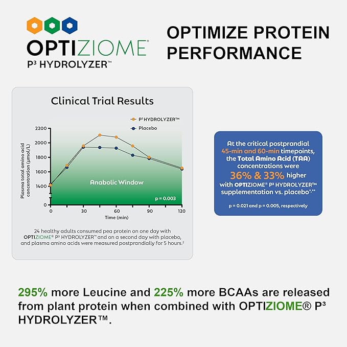 - OPTIZIME P3 Digestive Support: Featuring an innovative enzyme blend, this vegan protein powder increases Total Amino Acid (TAA) absorption by over 30% within 45-60 minutes, helping your body make the most of every scoop.