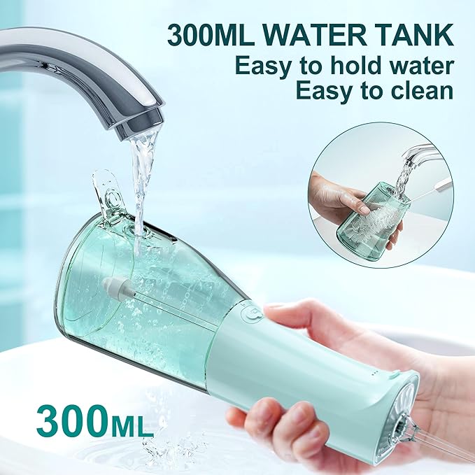 - 【300ML Big capacity & IPX7 Waterproof】Yes, With 300ml water tank! don't need to refill water multiple times. The capacity of our water dental floss is far better than other products. The removable water tank is easy to clean. Water dental flossers picks owns internal water leak-proof design, Mocel oral irrigator prevent water leakage reliably, It can use for shower in the bathroom and it's washable to clean (Make sure the rubber base cover is closed tightly )