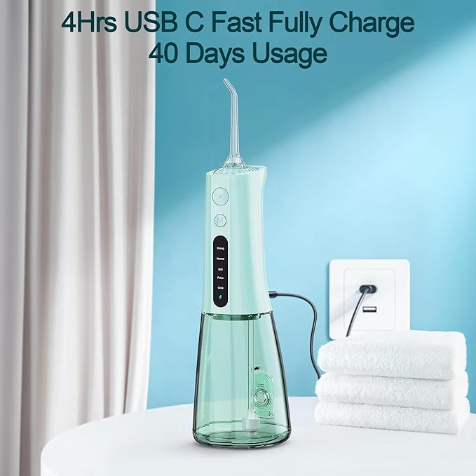 - 【40 Days Long Usage&Powerful Battery Life】MOCEL Cordless water dentel flosser is powerful and the Powerful battery takes 4 hours to fully charge and lasts 40 days of continuous use. The cordless design makes it easy to use at home and on the go, Note: The charging adapter is not included, But the dental floss equipped with USB C cable is ideal for home, travel, office or business trips