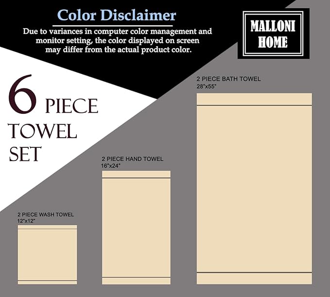 - Each set contains 2 oversized bath towels 28x55 inches, 2 hand towels 16x24 inches & 2 wash cloths 12x12 inches