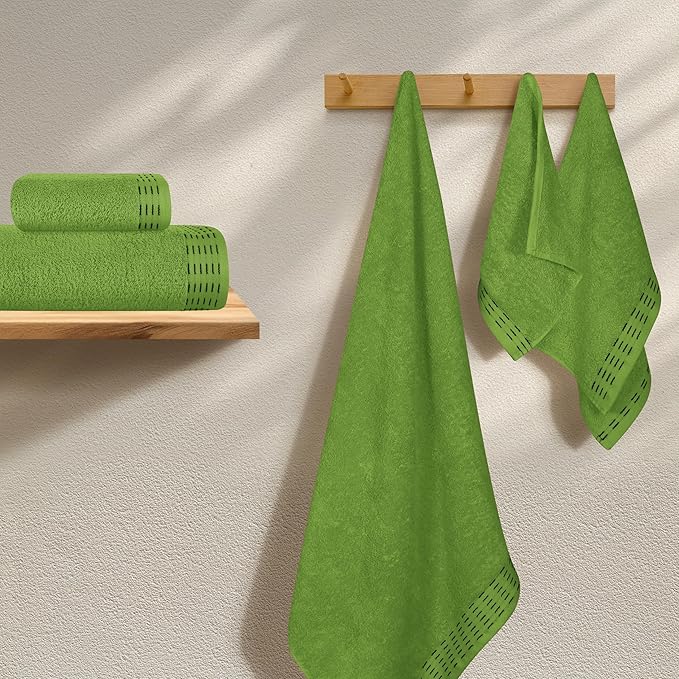 Ultra Soft 6 Pack Cotton Towel Set, Contains 2 Bath Towels 28x55 inch, 2 Hand Towels 16x24 inch & 2 Wash Coths 12x12 inch, Ideal Everyday use, Compact & Lightweight - Kiwi Green