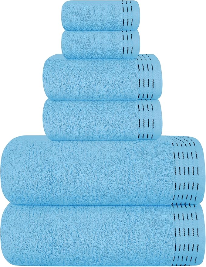 Ultra Soft 6 Pack Cotton Towel Set, Contains 2 Bath Towels 28x55 inch, 2 Hand Towels 16x24 inch & 2 Wash Coths 12x12 inch, Ideal Everyday use, Compact & Lightweight - Sky Blue