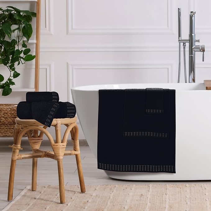 Ultra Soft 6 Pack Cotton Towel Set, Contains 2 Bath Towels 28x55 inch, 2 Hand Towels 16x24 inch & 2 Wash Coths 12x12 inch, Ideal Everyday use, Compact & Lightweight - Black