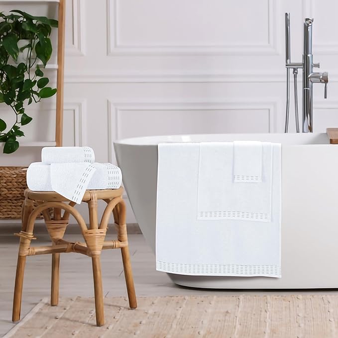 Ultra Soft 6 Pack Cotton Towel Set, Contains 2 Bath Towels 28x55 inch, 2 Hand Towels 16x24 inch & 2 Wash Coths 12x12 inch, Ideal Everyday use, Compact & Lightweight - White