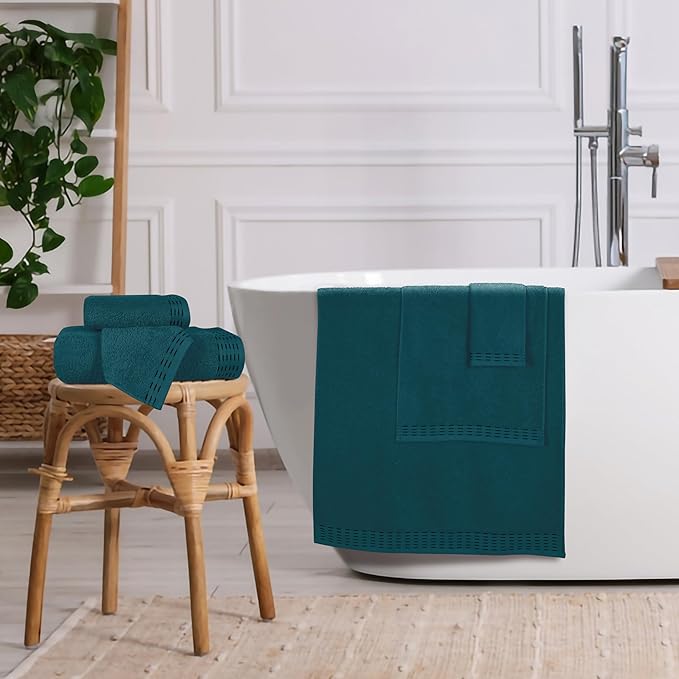 Ultra Soft 6 Pack Cotton Towel Set, Contains 2 Bath Towels 28x55 inch, 2 Hand Towels 16x24 inch & 2 Wash Coths 12x12 inch, Ideal Everyday use, Compact & Lightweight - Teal